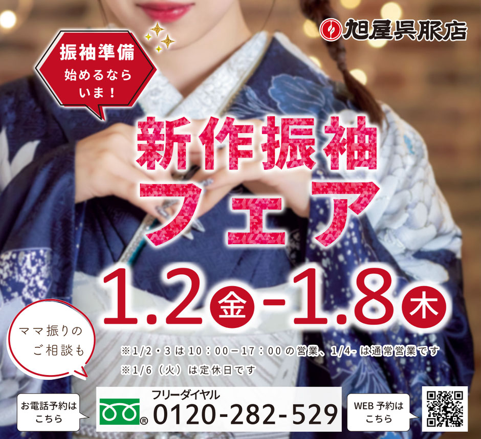 新年初売り振袖フェアは8日まで!今日と明日は10時から17時の営業、4日からは通常営業となります。