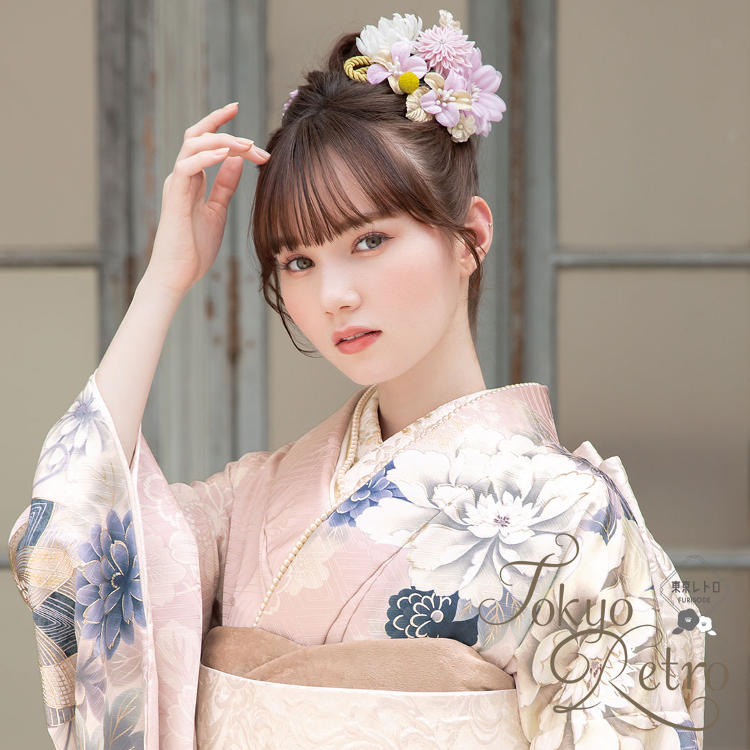 当店で扱っているお振袖は全て絹100%。振袖も、半衿・帯揚げ・帯締め・草履・バッグと言った小物類も呉服専門店ならではのこだわりで、上質な品だけを厳選してご用意しております。お好みのままにコーディネイトをお楽しみください。
