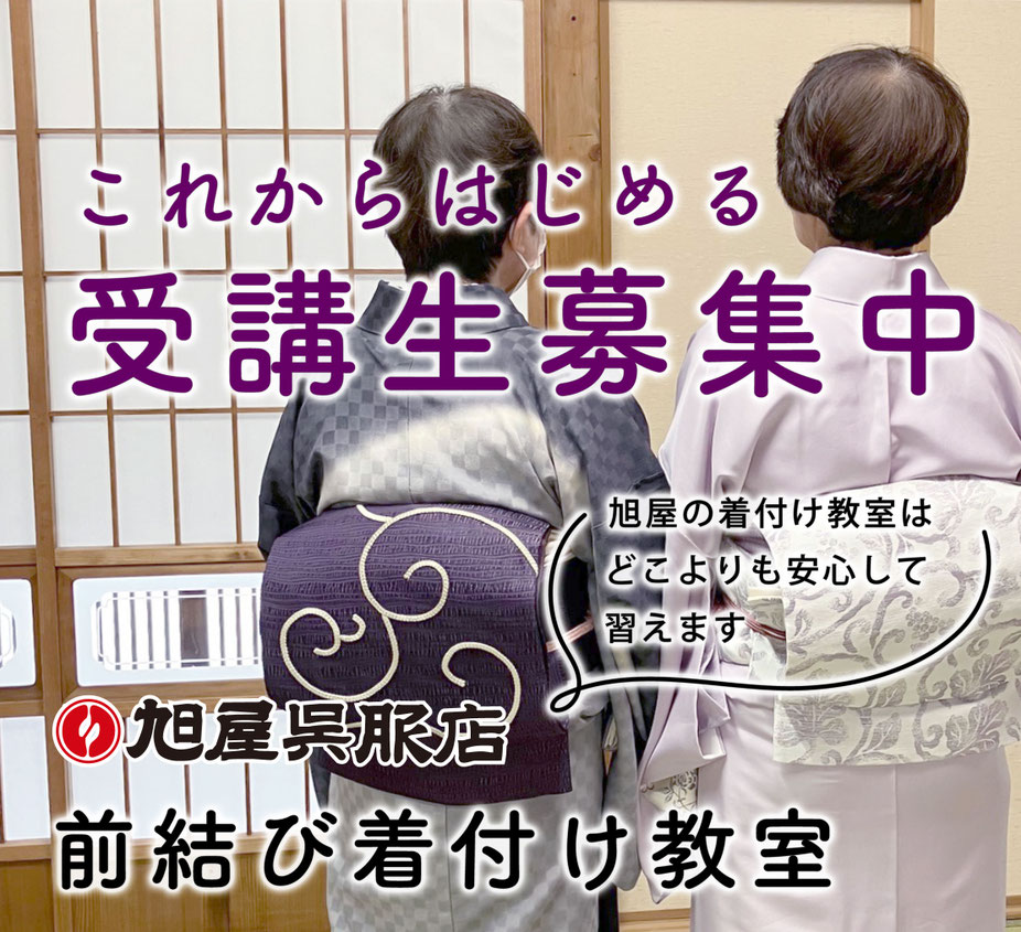 「着物は難しそう」そんなイメージをお持ちではないでしょうか。けれど、着物はかつては普段着。着付けも親から子へと自然に伝えられていくものでした。着物と言う文化を守りたい。そんな思いから、旭屋呉服店では着付け教室を開催しております。呉服屋が主催するからこそ、きちんと責任を持ってお教えします。